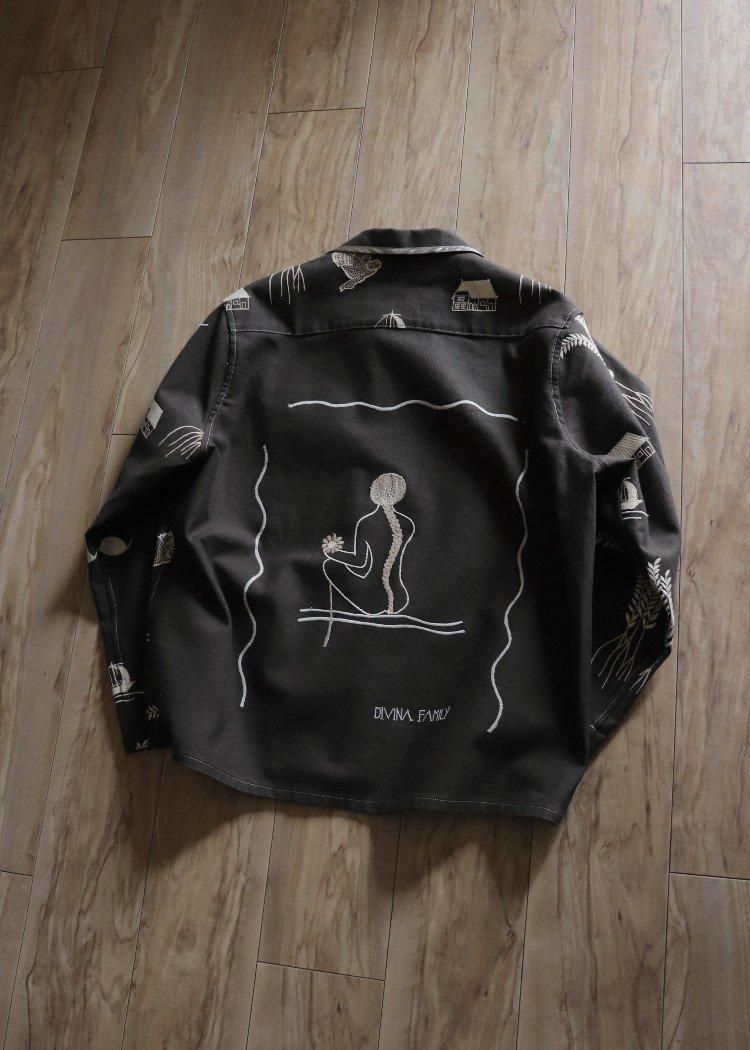 【embroidered canvas shirt jacket】